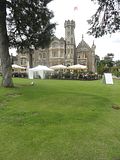 Actually it's now a prestige hotel, although at the time of filming The Rocky Horror Picture Show, Oakley Court was a dilapidated shell. The crew had to work around buckets catching the rainwater from the holes in the roof and tread carefully on the old rotting timbers. It is said that most of the cast caught very bad colds during filming. *